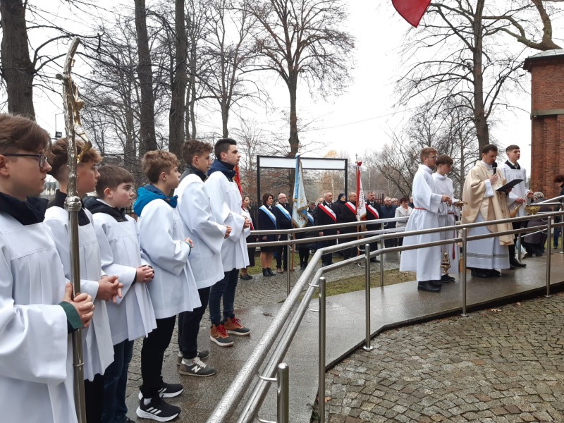11 listopad 2025 - Święto Niepodległości – o godzinie 9:00 w Sanktuarium Św. Andrzeja Boboli przeżywaliśmy Mszę Świętą w intencji Ojczyzny z kazaniem, której przewodniczył Ksiądz Proboszcz. Po Mszy Świętej udaliśmy się pod tablicę poległych umieszczoną na frontonie kościoła, aby modlić się za tych którzy z naszej parafii oddali życie za Ojczyznę.